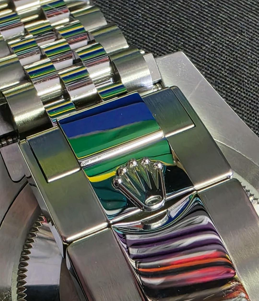 สาย: สแตนเลสสตีล Jubilee หรือ Oyster 904L พร้อมบานพับล็อกแน่นหนา